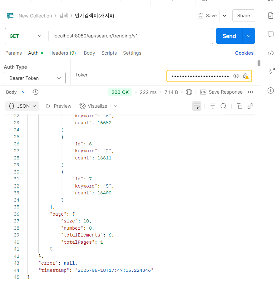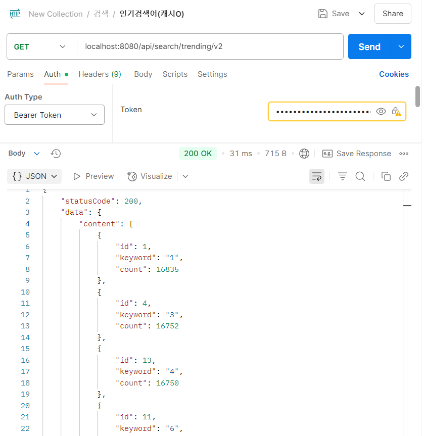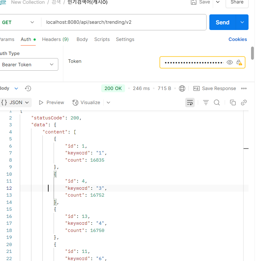 - 인기검색어 시간이 정해지면, 로그에 creatTime과 계산로직 추가 할 예정입니다.